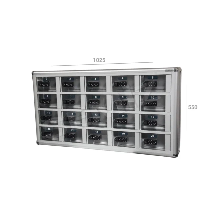 Elektronik sınıf telefon dolabı, öğrencilerin dikkat dağınıklığını önlemek ve cihaz güvenliğini sağlamak amacıyla kullanılır. Her bölme şifreli veya kartlı sistemle açılabilir.